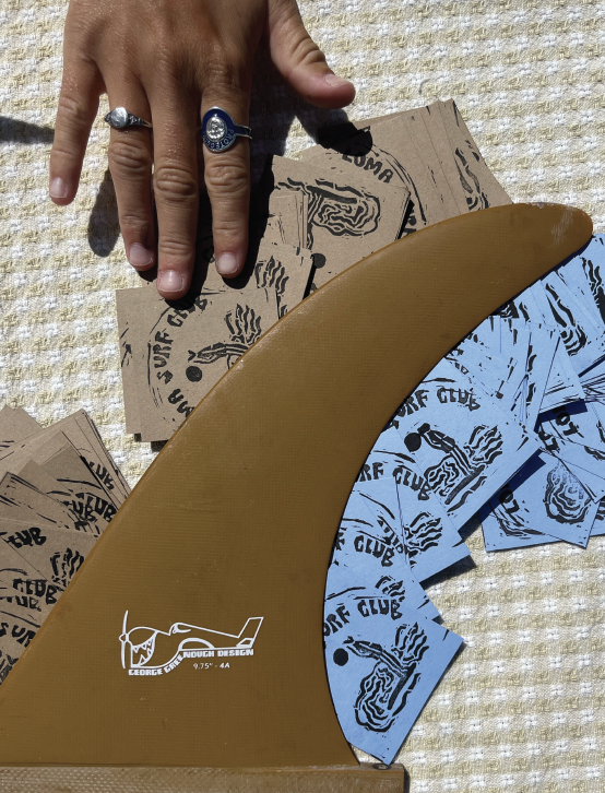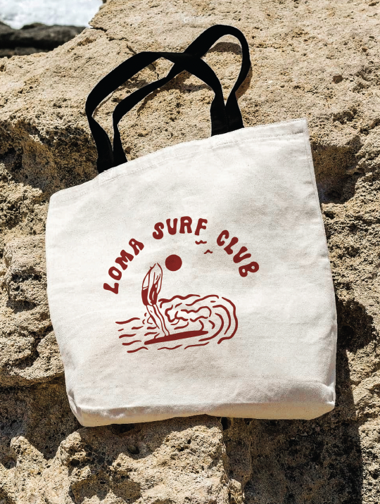I reimagined the logo for Loma Surf Club with hand-drawn illustration and funky, retro typography to capture the laid-back spirit of the Point Loma surf scene. Featuring a longboarder hanging ten beneath the sun and birds, the design evokes the feel of a perfect summer day—and was later brought to life as both digitized merch and hand-carved stamps for the club fair.