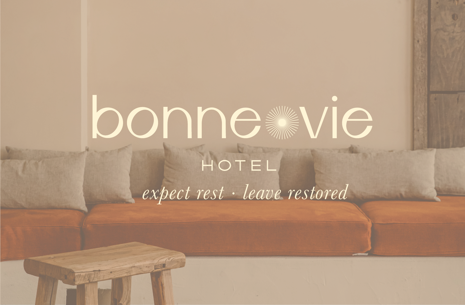 I rebranded HOY Hotel in Paris into Bonne Vie, a wellness-focused destination that embodies the essence of “The Good Life.” Inspired by the healing energy of the morning sun, the logo features a radiant symbol that reflects the hotel’s holistic approach to rest and renewal, supported by a full identity system and 36-page brand manual.